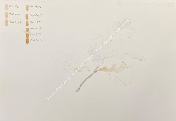 By creating a reference key, this artist was able to work out which shades were created from each solution. From here they were able to plan their approach to painting Oak leaves using the Oak solutions.